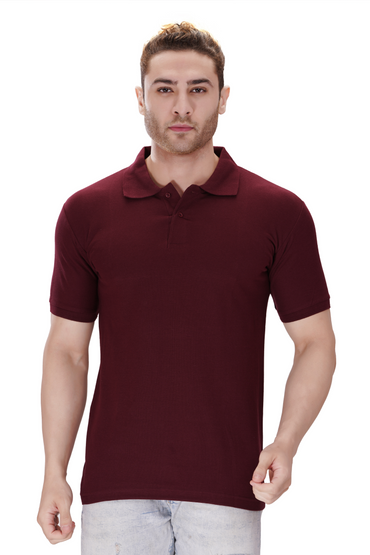 100% Cotton Men’s Half Sleeve Polo Neck T-Shirt - Maroon