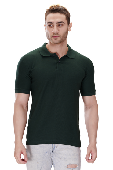 100% Cotton Men’s Half Sleeve Polo Neck T-Shirt - Bottel Green